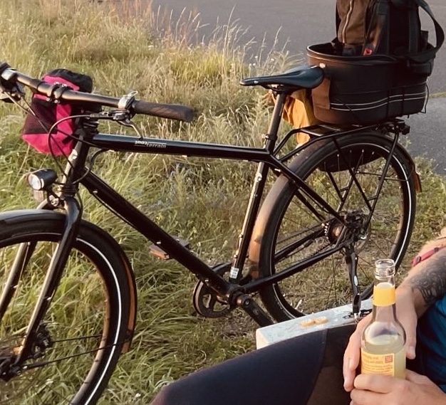 : Lackschäden am Gepäckträger vom montierten Hundekörbchen, Sattel: Terry Butterfly Arteria Max Woman, Klingel: Knog Oi luxe small gold, zusätzlich ein Klickfix Xtra Rail auf rechter Seite montiert